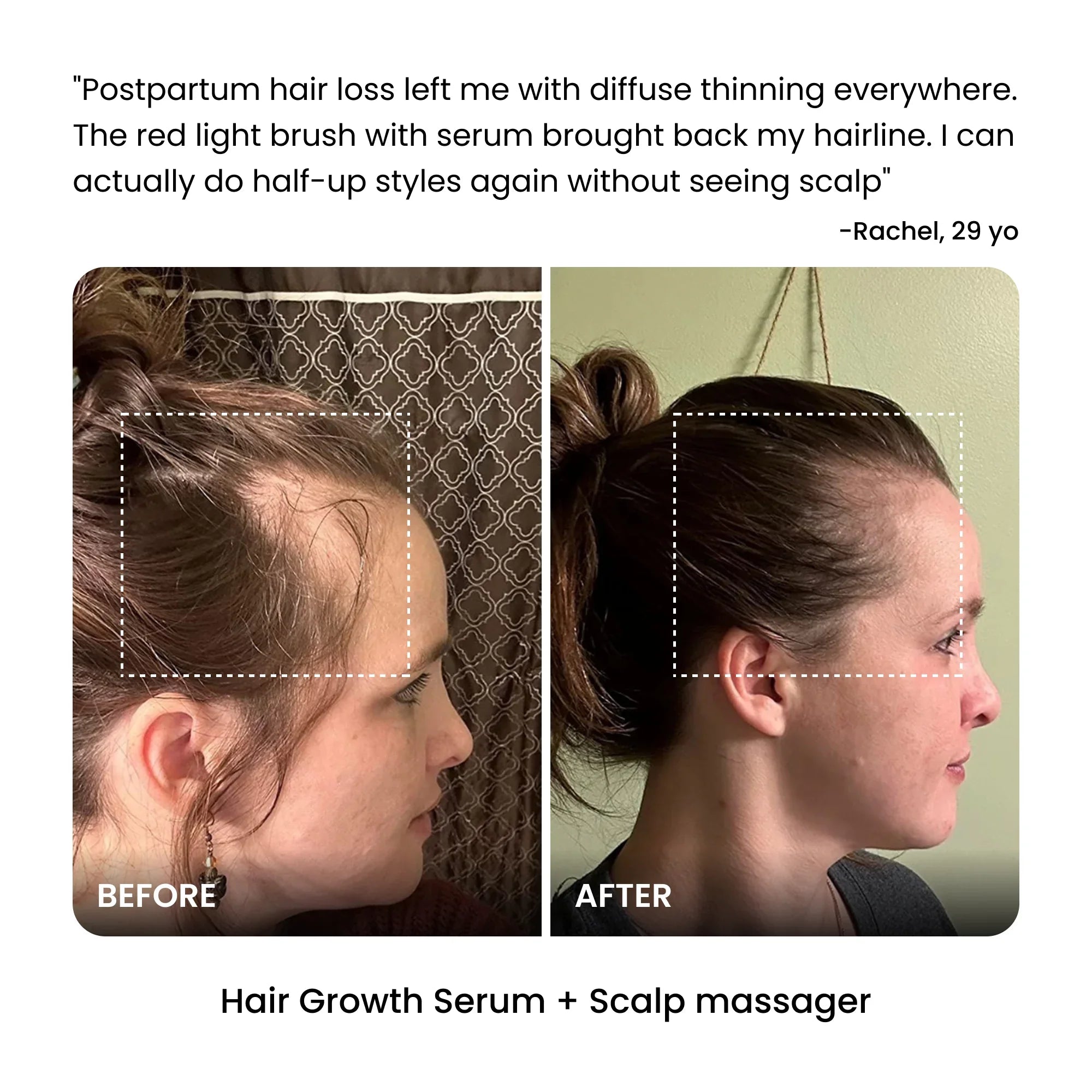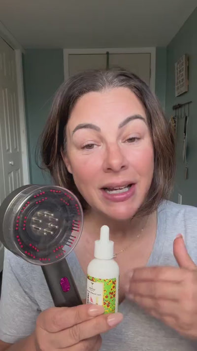 Yes. The 630nm red light wavelength is FDA-recognized as safe and non-invasive. The massage tips are hair-safe silicone, and the serum is made from natural, plant-based oils.